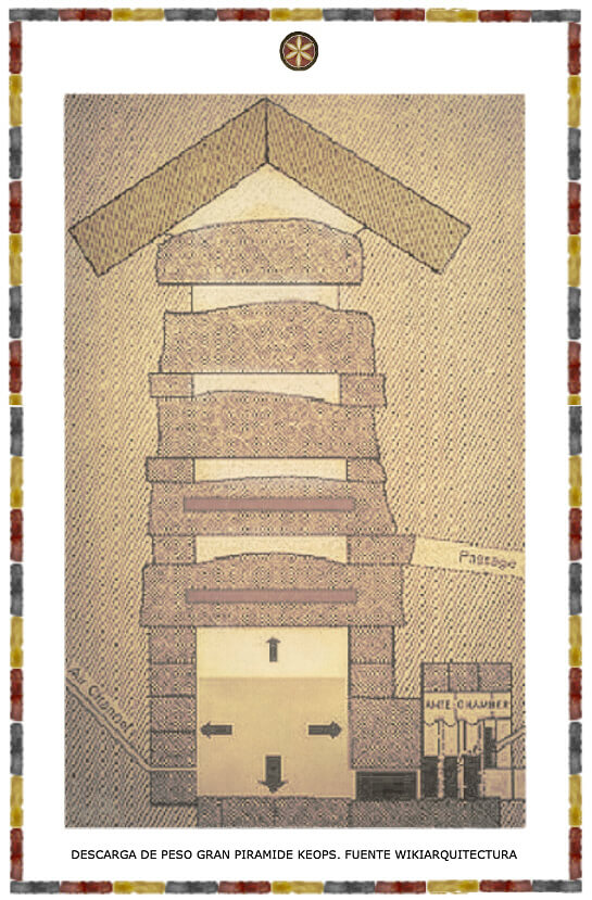 A unos miles de kilómetros de distancia vemos una prueba muy elocuente para emparentar esta modesta solución de un caserío de La Sierra de Gata con el antiguo Egipto: la imponente pirámide de Keops utiliza el mismo sistema para que la “Cámara del Rey” no colapse por el tremendo peso que debe soportar desde arriba.