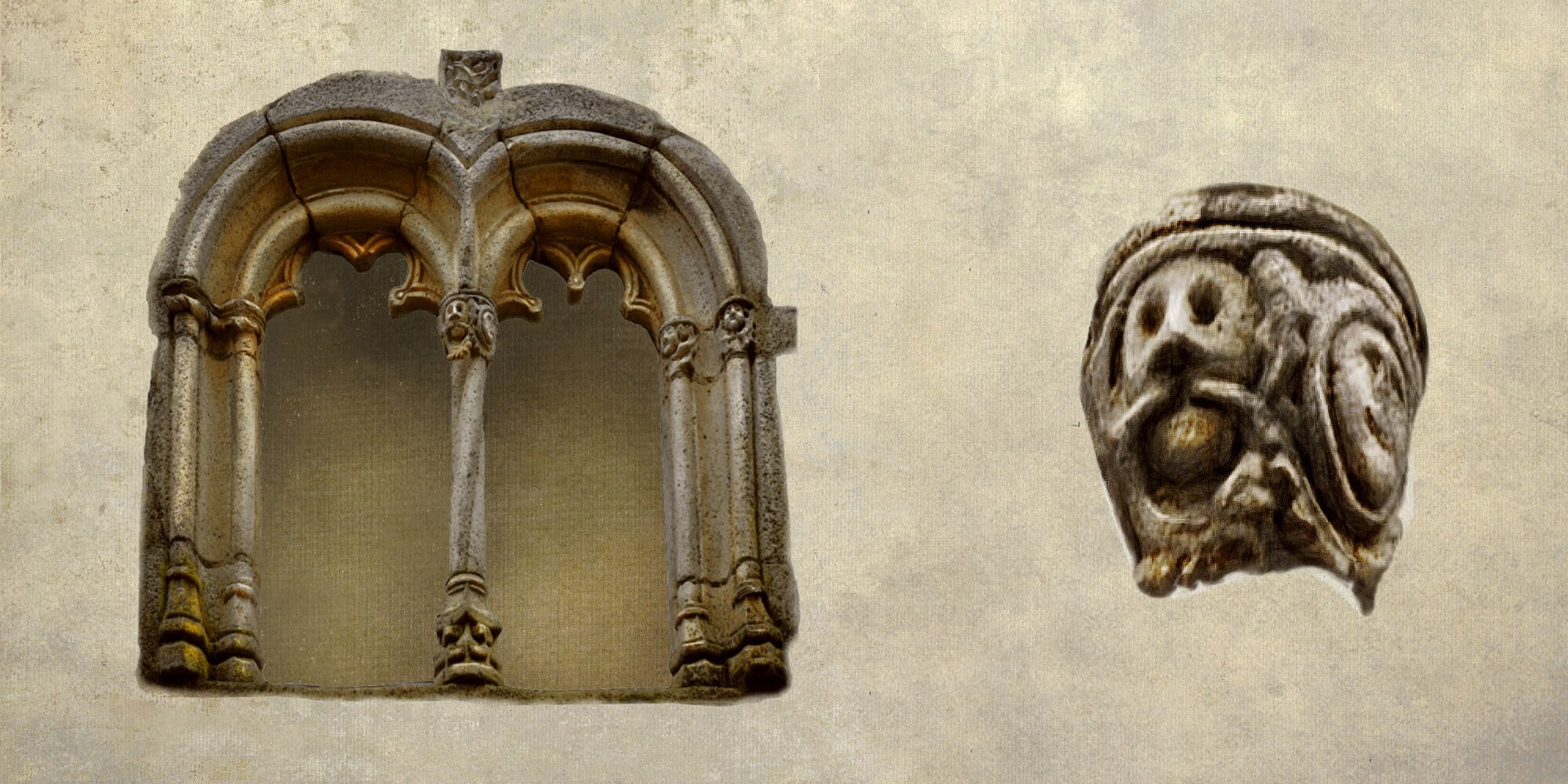 Siguiendo al prolífico Catedrático de Historia del Arte de la Universidad de Extremadura, don Florencio Javier García Mogollón, éste se sorprende que en una vivienda modernizada exista esta preciosa ventana gótica, ajimezada – que quiere decir que está arqueada y con una columna en el medio – continúa manifestando que tiene los dos vanos polilobulados. Es de la opinión, por otro lado de que la columna central, quizá por influencia portuguesa, es torsa, como las de la portada eclesial de Eljas, y su capitelillo se adorna con curiosas carátulas humanas de cuyas bocas salen elementos vegetales. Las mismas figuras o carátulas se observan en el resto de los capiteles.
